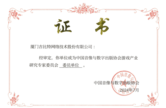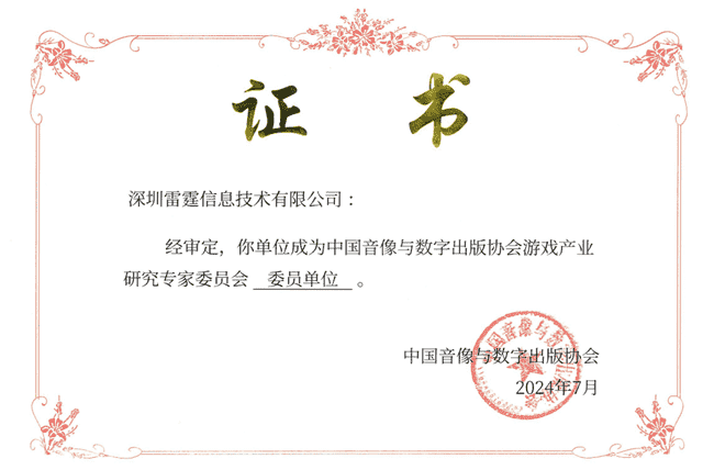 2024年7月25日,,,,中国音像与数字出版协会游戏产业研究专家委员会(以下简称“中国音数协游戏专委会”)成立大会在上海市召开,,厦门赏金大对决网络技术股份有限公司及其子公司深圳雷霆信息技术有限公司(以下统称“公司”)正式成为中国音数协游戏专委会委员单位。。