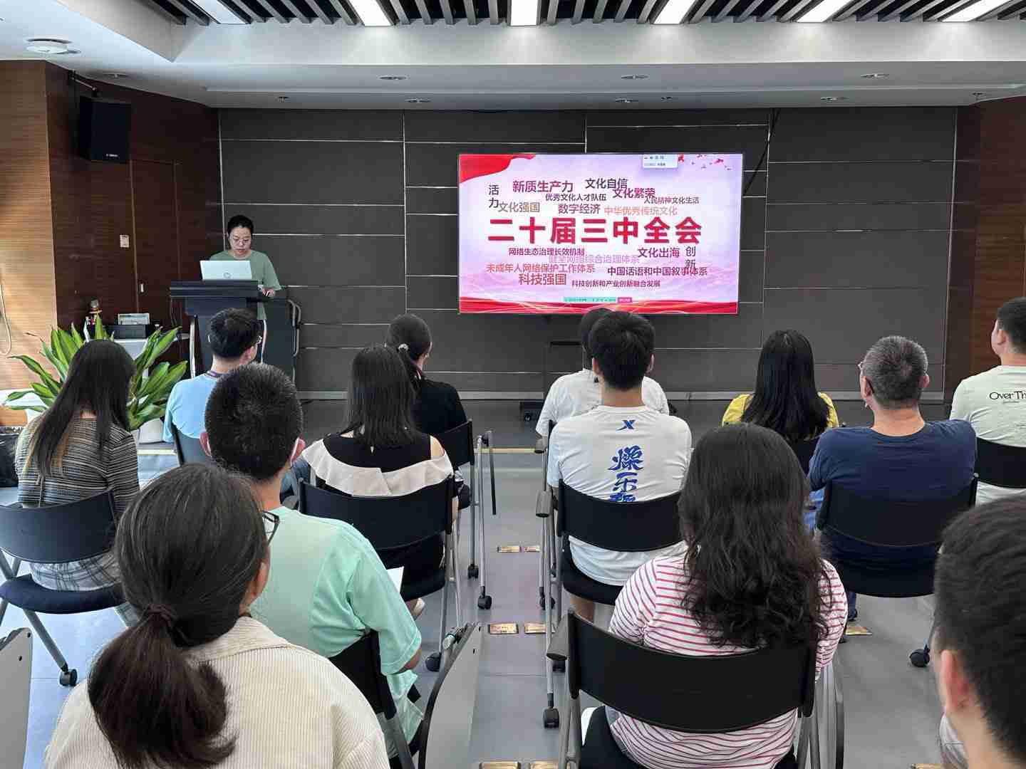 与会人员深入学习《决定》内容。。。。党的二十届三中全会提出必须增强文化自信,,发展社会主义先进文化,,,弘扬革命文化,,传承中华优秀传统文化,,加快适应信息技术迅猛发展新形势,,构建更有效力的国际传播体系,,,,这为广大文化产业工作者指明了奋斗方向。。